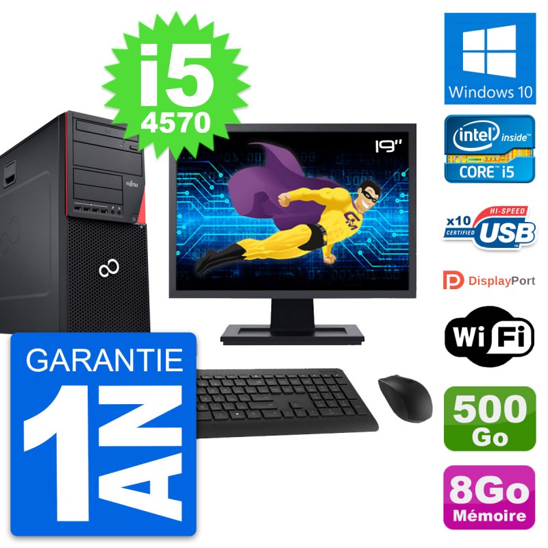 PC Tour Fujitsu P720 Ecran 19" Core i5-4570 RAM 8Go Disque 500Go Windows 10 Wifi