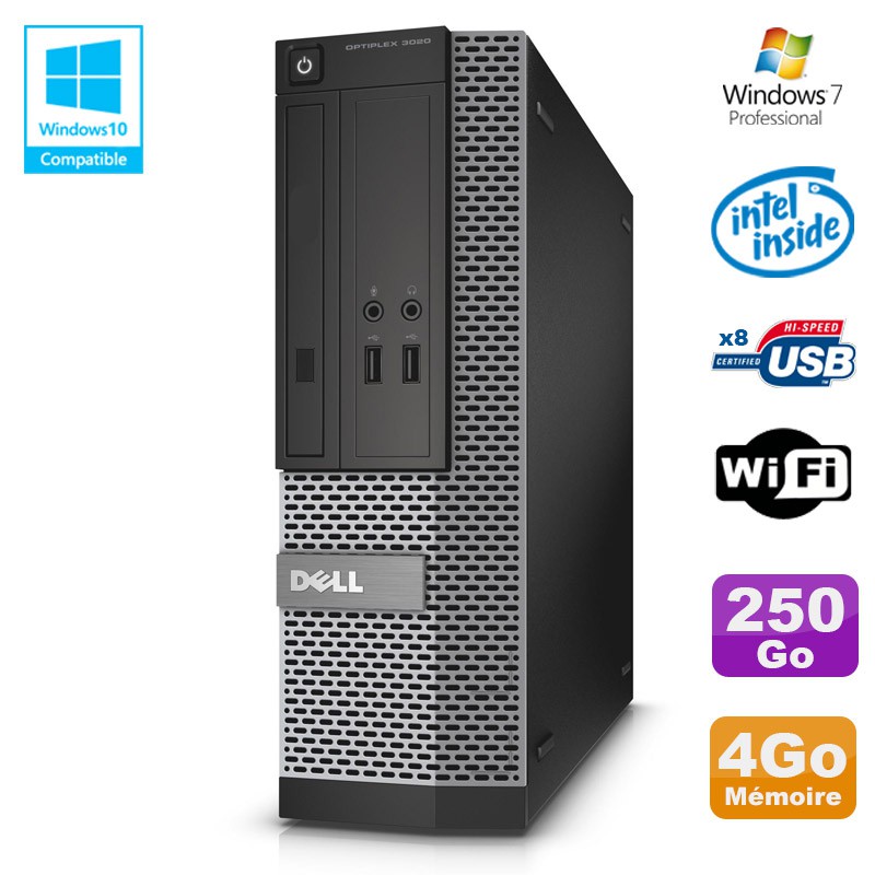 PC Dell Optiplex 3020 SFF Intel G3220 3GHz 4Go Disque 250Go DVD Wifi W7