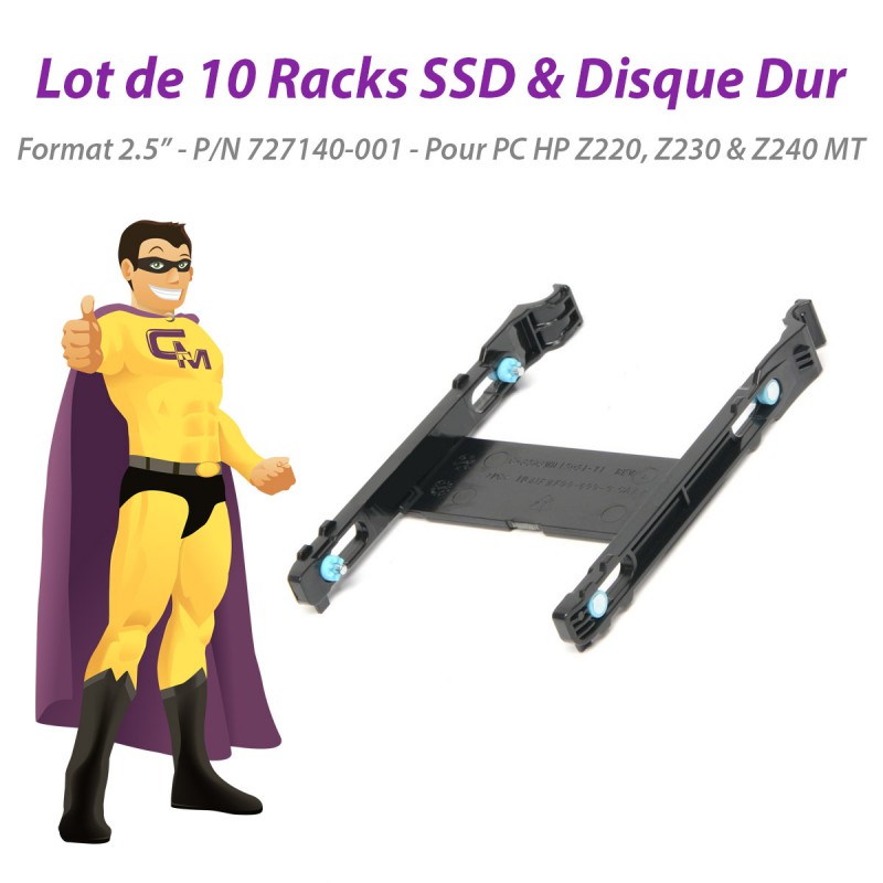 Lot de 100 Racks pour Disque Dur 2.5" et SSD - HP - P/N 727140-001 / 1B41FWF00-600-G / IB4IFWF00-600-G - Pour PC HP Workstation Z220, Z230 et Z240 format MT (Moyenne Tour) - Garantis 6 mois.