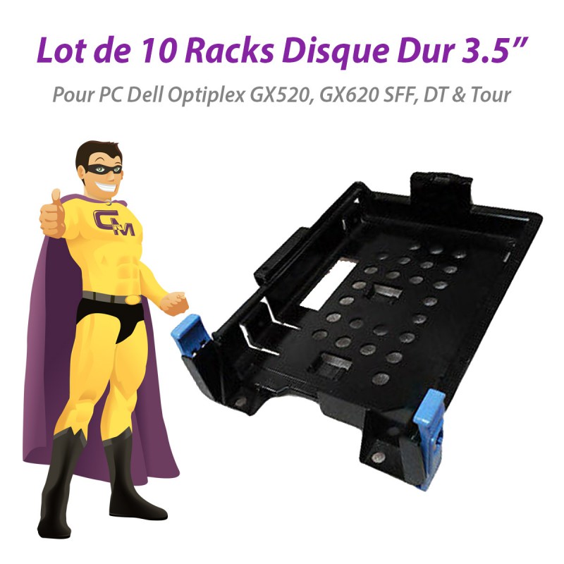 Lot de 10 Racks pour Disque Dur 3.5" - Dell - P/N N8362 / JK134 / GK158 / C2950-701 - Pour PC Dell OptiPlex GX520 & GX620 format SFF, DT et Tour - Garantis 6 mois.