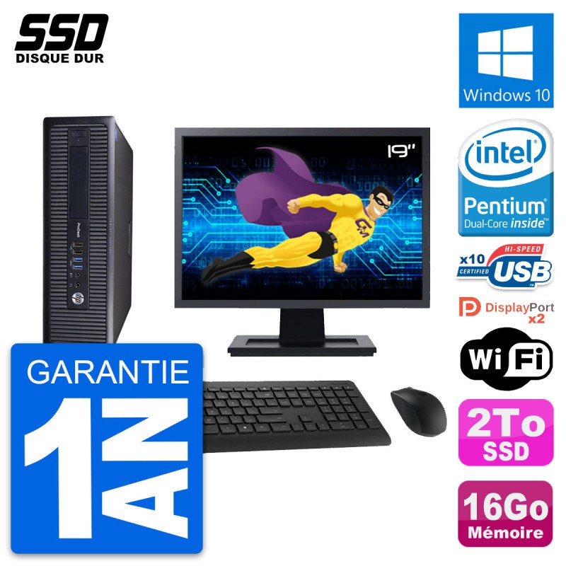 PC HP ProDesk 600 G1 SFF - Intel Pentium Dual-Core G3220 3.0 Ghz (3 Mo) - 16 Go DDR3 - SSD 2 To - Clef Wifi USB - Windows 10 - Livré avec Ecran 19" + clavier + souris (Marques et modèles variables) - Garantie 1 an.