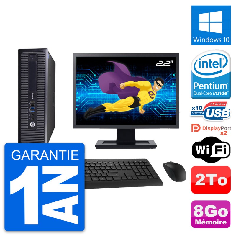PC HP ProDesk 600 G1 SFF - Intel Pentium Dual-Core G3220 3.0 Ghz (3 Mo) - 8 Go DDR3 - Disque Dur 3,5" 2 To - Clef Wifi USB - Windows 10 - Livré avec Ecran 22" + clavier + souris (Marques et modèles variables) - Garantie 1 an.