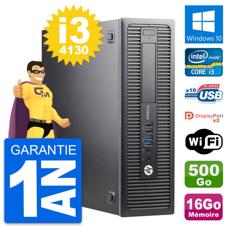 PC HP ProDesk 600 G1 SFF Intel i3-4130 RAM 16Go Disque 500Go Windows 10 Wifi