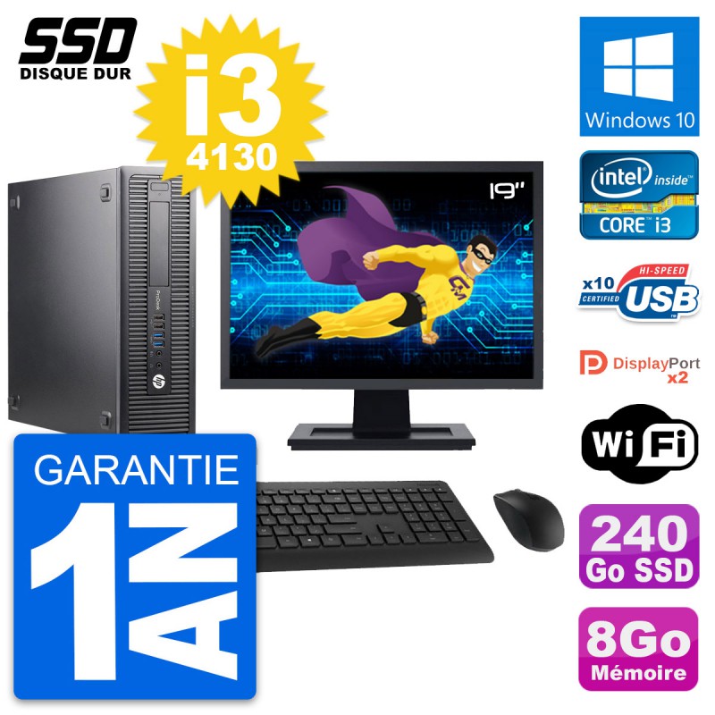 PC HP ProDesk 600 G1 SFF - Intel Core i3-4130 3.4 Ghz (3 Mo) - 8 Go DDR3 - SSD 240 Go - Clef Wifi USB - Windows 10 - Livré avec Ecran 19" + clavier + souris (Marques et modèles variables) - Garantie 1 an.