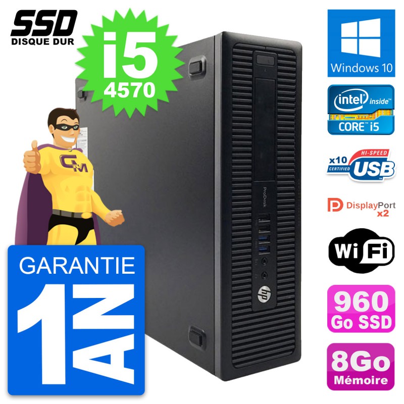 PC HP ProDesk 600 G1 SFF Intel Core i5-4570 RAM 8Go SSD 960Go Windows 10 Wifi