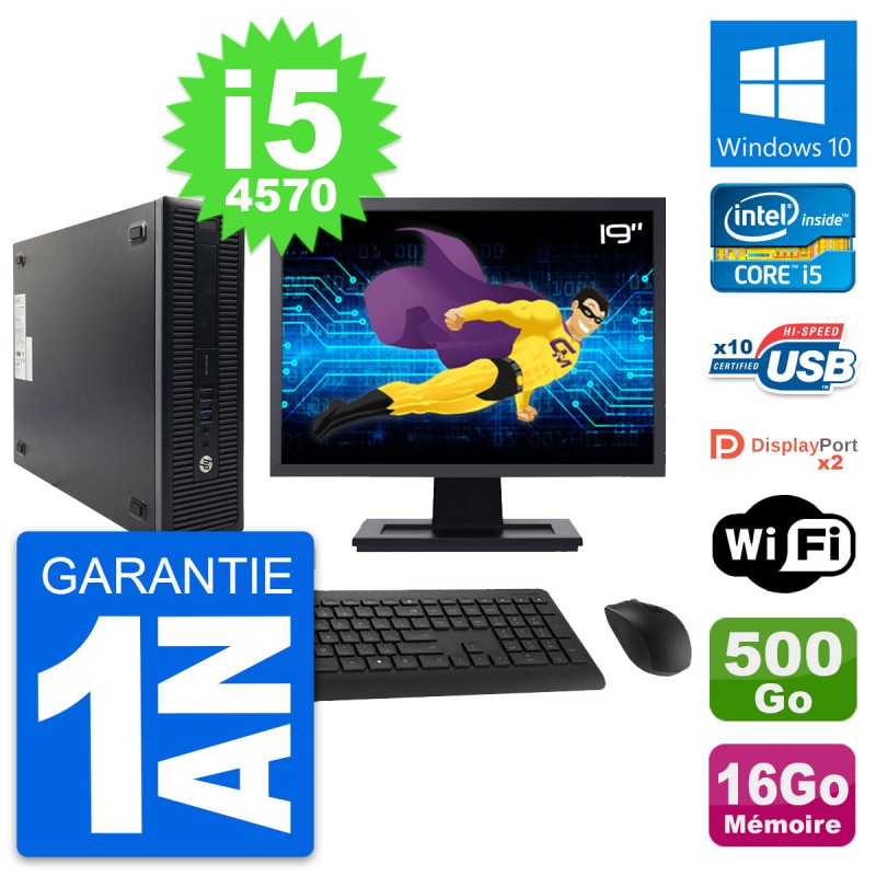 PC HP ProDesk 600 G1 SFF - Intel Core i5-4570 3.2 Ghz (6 Mo) - 16 Go DDR3 - Disque Dur 3,5" 500 Go - Clef Wifi USB - Windows 10 - Livré avec Ecran 19" + clavier + souris (Marques et modèles variables) - Garantie 1 an.