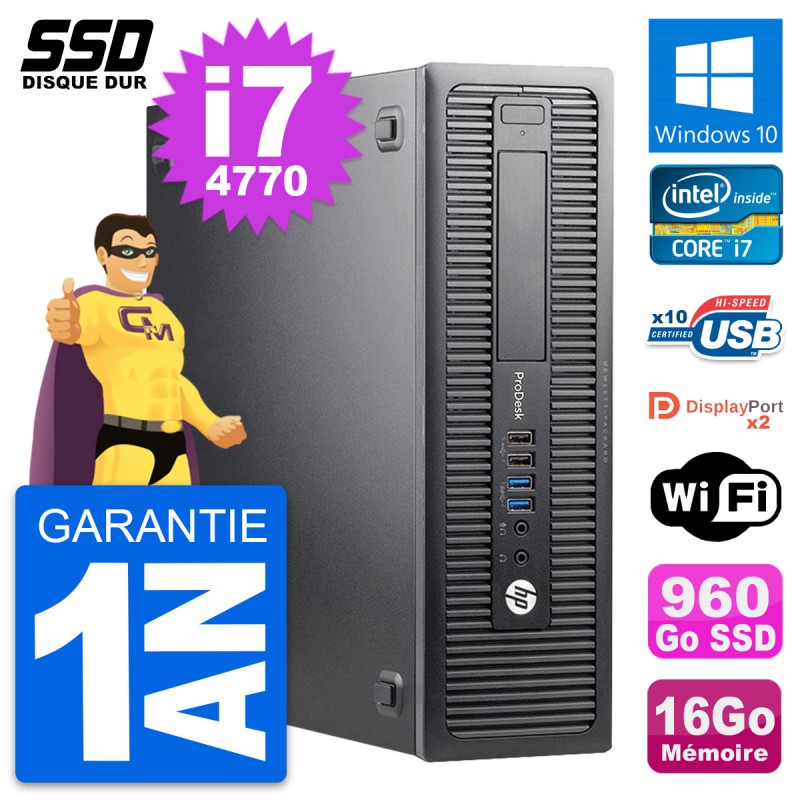 PC HP ProDesk 600 G1 SFF Intel Core i7-4770 RAM 16Go SSD 960Go Windows 10 Wifi