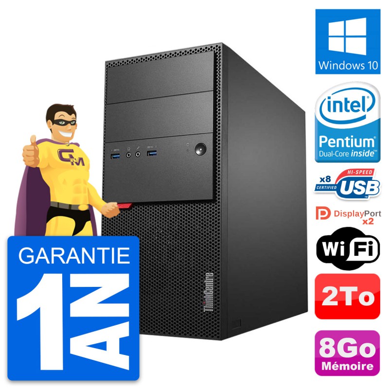 PC Tour Lenovo ThinkCentre M900 - Intel Pentium Dual-Core G4400 3.3 Ghz (3 Mo) - 8 Go DDR4 - Disque Dur 3,5" 2 To - Clef Wifi USB - Windows 10 - Garantie 1 an.