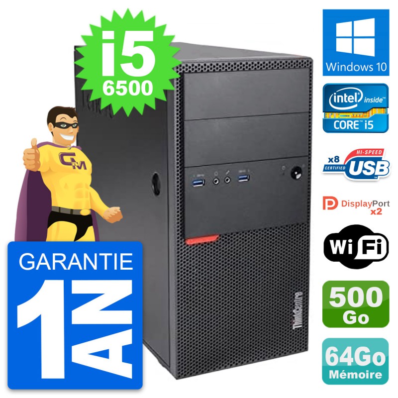 PC Tour Lenovo ThinkCentre M900 i5-6500 RAM 64Go Disque 500Go Windows 10 Wifi
