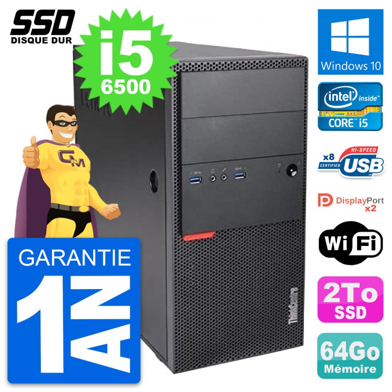 PC Tour Lenovo ThinkCentre M900 - Intel Core i5-6500 3.2 Ghz (6 Mo) - 64 Go DDR4 - SSD 2 To - Clef Wifi USB - Windows 10 - Garantie 1 an.