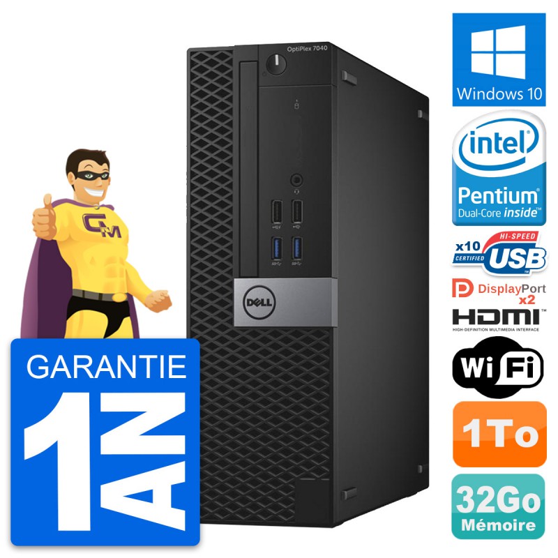 PC Dell OptiPlex 7040 SFF - Intel Pentium Dual-Core G4400 3.3 Ghz (3 Mo) - 32 Go DDR4 - Disque Dur 3,5" 1 To - Clef Wifi USB - Windows 10 - Garantie 1 an.