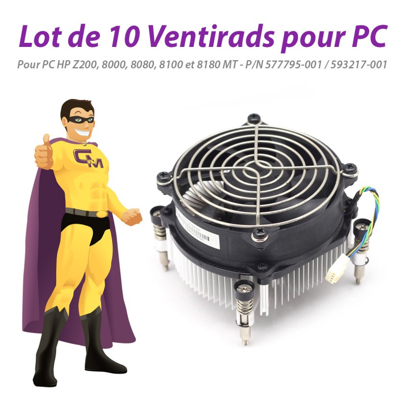 Lot de 10 Ventirads pour Processeur - HP - P/N 577795-001 / 593217-001 - Pour PC HP Elite 8000, 8080, 8100, 8180 et WorkStation Z200 format MT (Moyenne Tour) - Garantis 6 mois.