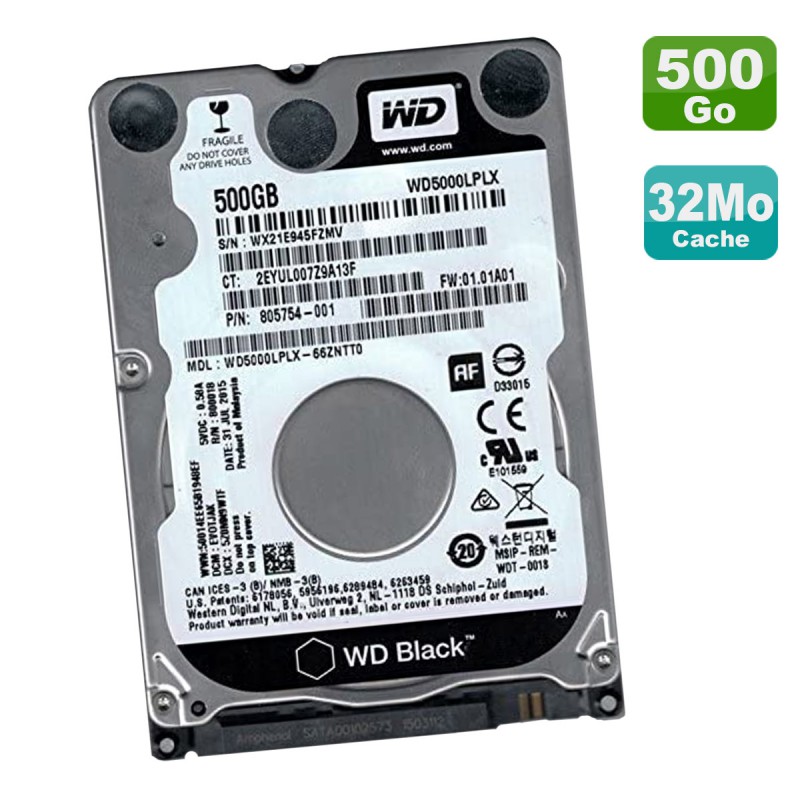 Disque Dur 500Go SATA 2.5" WD Black WD5000LPLX-66ZNTT0 HP 805754-001 01.01A01