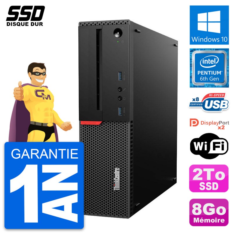 PC Lenovo ThinkCentre M800 SFF - Intel Pentium Dual-Core G4400 3.3 Ghz (3 Mo) - 8 Go DDR4 - SSD 2 To - Clef Wifi USB - Windows 10 - Garantie 1 an.