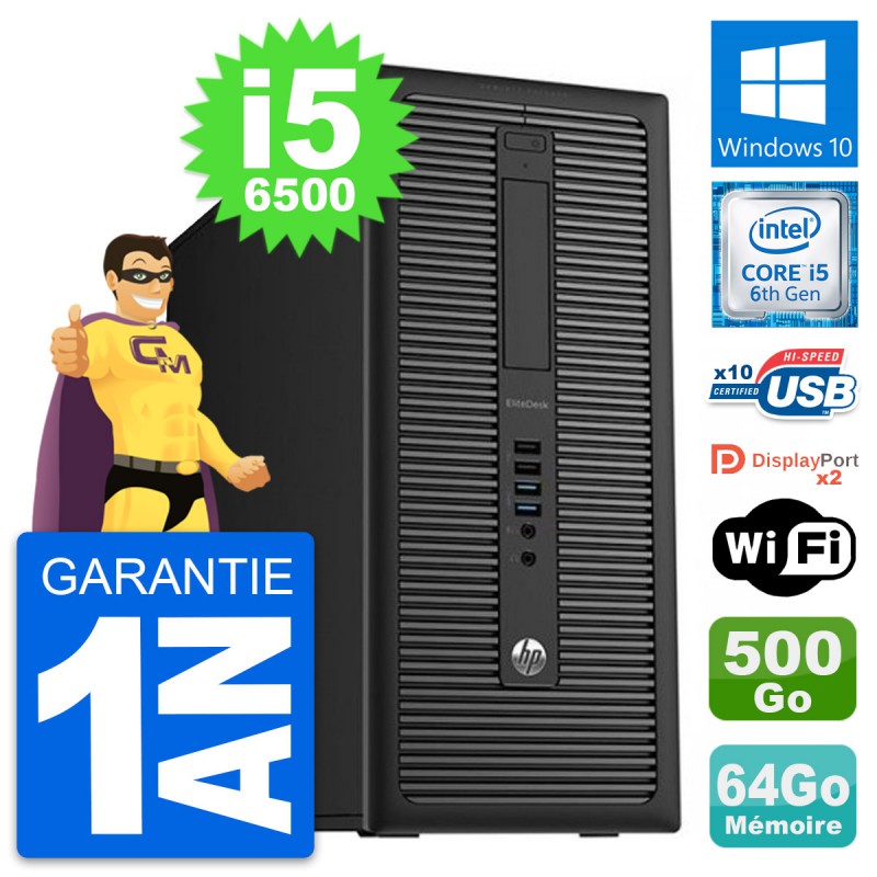 PC Tour HP EliteDesk 800 G2 Intel i5-6500 RAM 64Go Disque 500Go Windows 10 Wifi