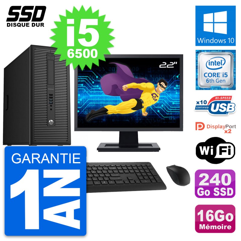 PC Tour HP EliteDesk 800 G2 Ecran 22" i5-6500 RAM 16Go SSD 240Go Windows 10 Wifi