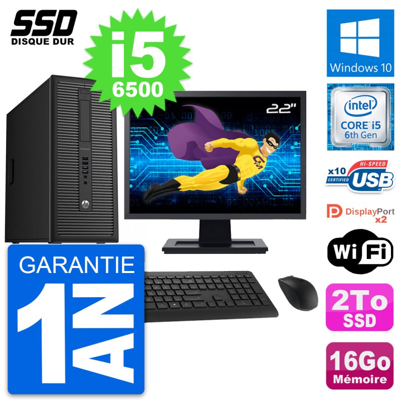 PC Tour HP EliteDesk 800 G2 Ecran 22" i5-6500 RAM 16Go SSD 2To Windows 10 Wifi