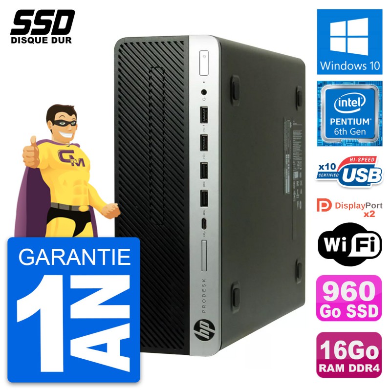 PC HP ProDesk 600 G3 SFF Intel Pentium G4400 RAM 16Go SSD 960Go Windows 10 Wifi