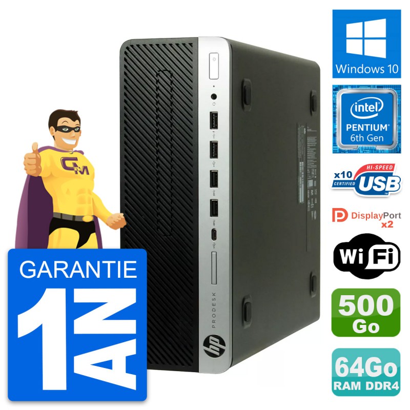 PC HP ProDesk 600 G3 SFF Intel G4400 RAM 64Go Disque Dur 500Go Windows 10 Wifi