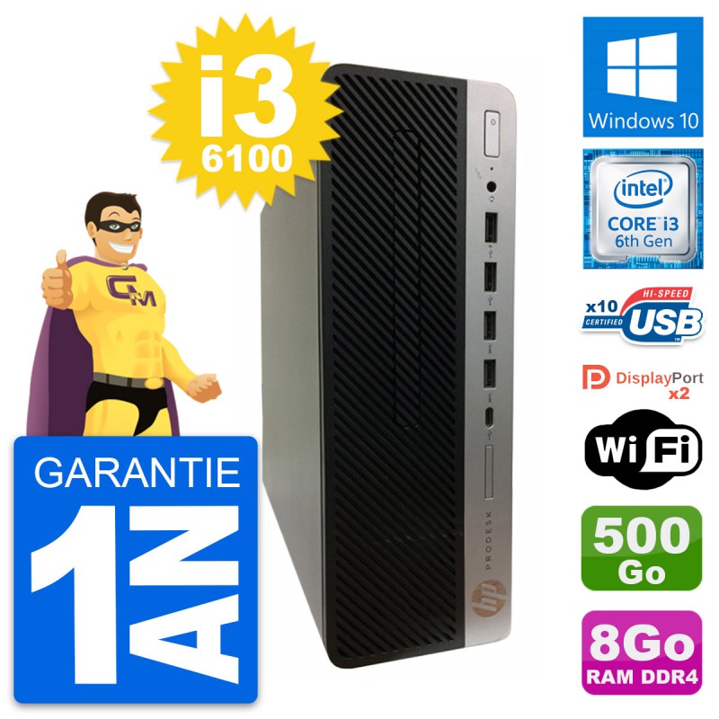 PC HP ProDesk 600 G3 SFF Intel i3-6100 RAM 8Go Disque Dur 500Go Windows 10 Wifi