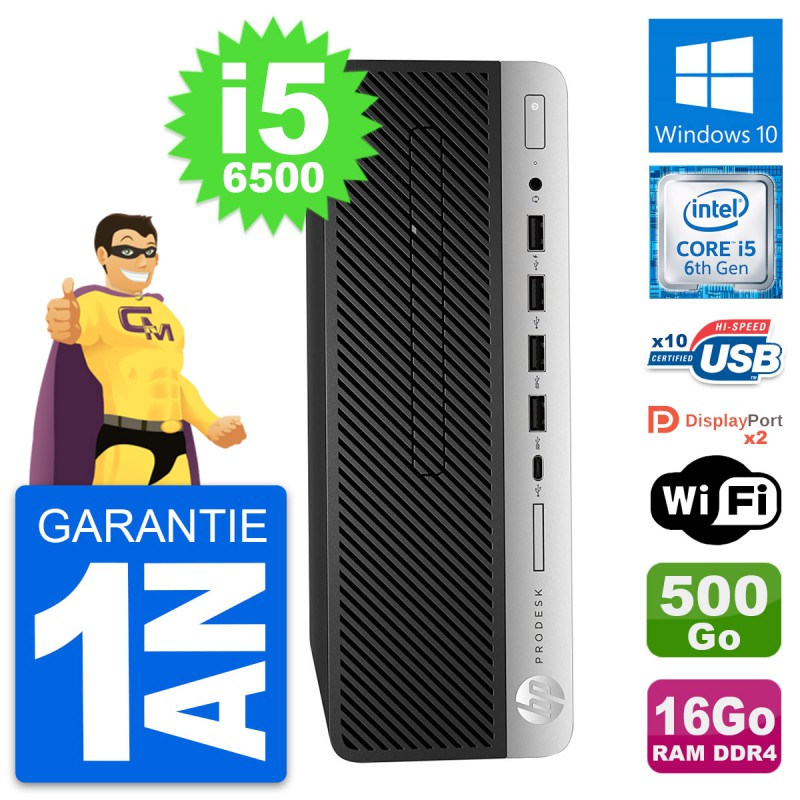 PC HP ProDesk 600 G3 SFF - Intel Core i5-6500 3.2 Ghz (6 Mo) - 16 Go DDR4 - Disque Dur 3,5" 500 Go - Clef Wifi USB - Windows 10 - Garantie 1 an.