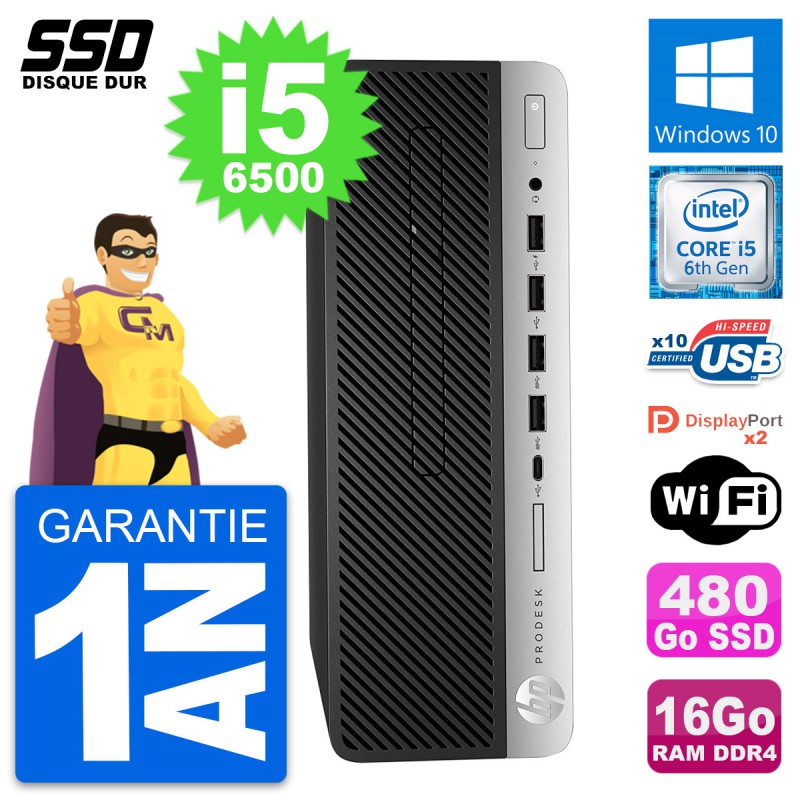 PC HP ProDesk 600 G3 SFF - Intel Core i5-6500 3.2 Ghz (6 Mo) - 16 Go DDR4 - SSD 480 Go - Clef Wifi USB - Windows 10 - Garantie 1 an.