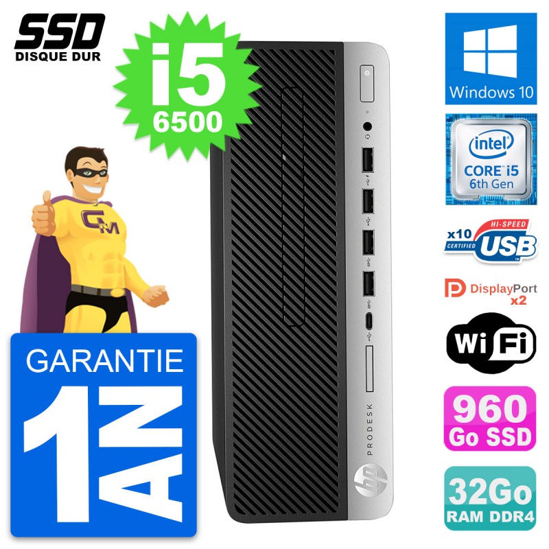 PC HP ProDesk 600 G3 SFF Intel Core i5-6500 RAM 32Go SSD 960Go Windows 10 Wifi