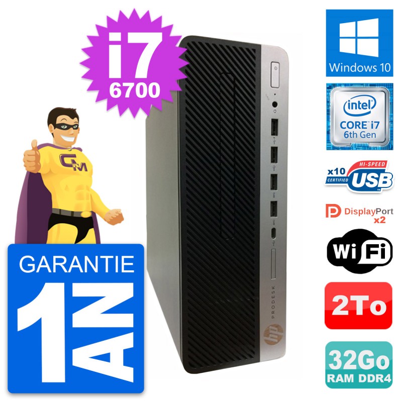 PC HP ProDesk 600 G3 SFF Intel Core i7-6700 RAM 32Go Disque 2To Windows 10 Wifi