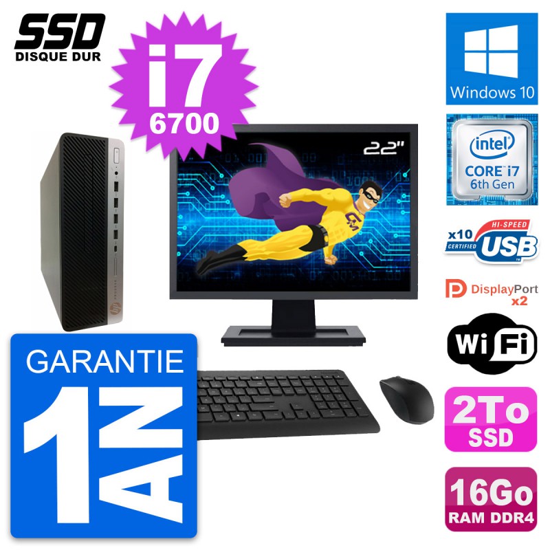 PC HP ProDesk 600 G3 SFF Ecran 22" Core i7-6700 RAM 16Go SSD 2To Windows 10 Wifi