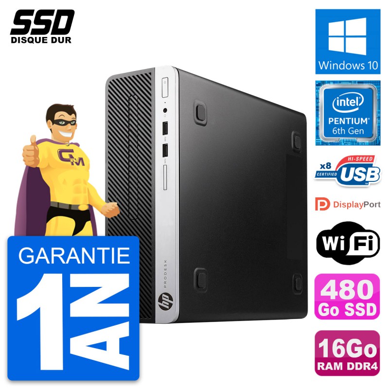 PC HP ProDesk 400 G4 SFF Intel Pentium G4400 RAM 16Go SSD 480Go Windows 10 Wifi