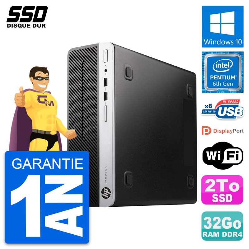 PC HP ProDesk 400 G4 SFF Intel Pentium G4400 RAM 32Go SSD 2To Windows 10 Wifi