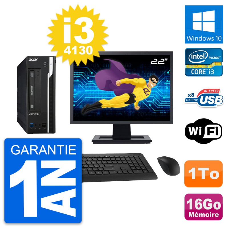 PC Acer Veriton X2632G SFF (slim) - Intel Core i3-4130 3.4 Ghz (3 Mo) - 16 Go DDR3 - Disque Dur 3,5" 1 To - Clef Wifi USB - Graveur DVD - Windows 10 - Livré avec Ecran 22" + clavier + souris (Marques et modèles variables) - Garantie 1 an.