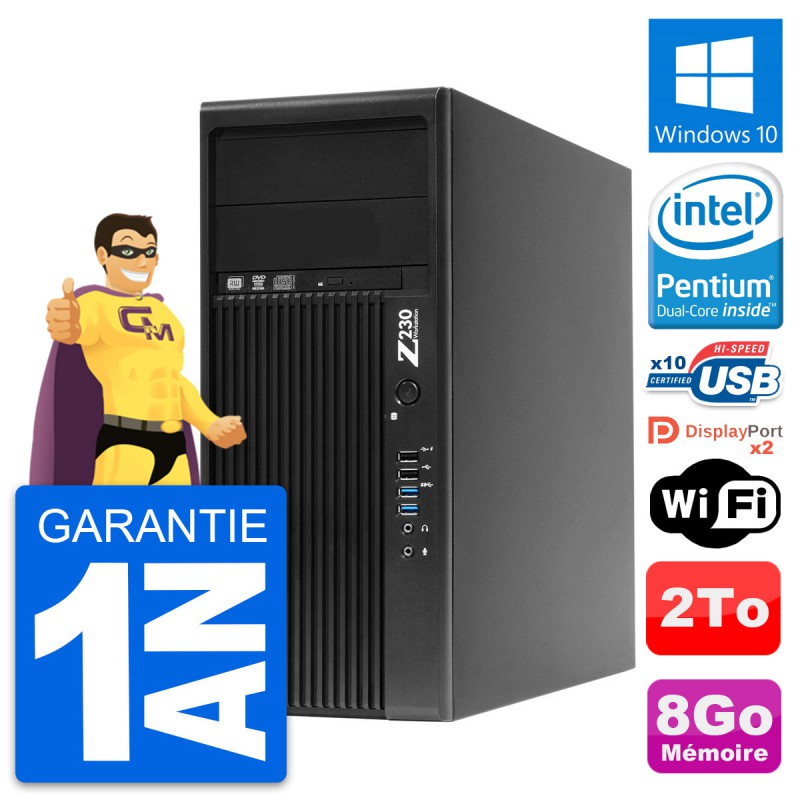 PC Tour HP WorkStation Z230 - Intel Pentium Dual-Core G3220 3.0 Ghz (3 Mo) - 8 Go DDR3 - Disque Dur 3,5" 2 To - Graveur DVD - Clef Wifi USB - Windows 10 - Garantie 1 an.