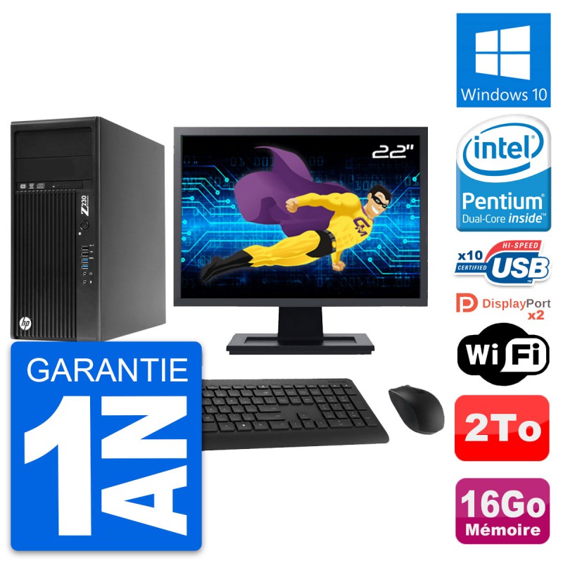 PC Tour HP Z230 Ecran 22" Pentium G3220 RAM 16Go Disque 2To Windows 10 Wifi