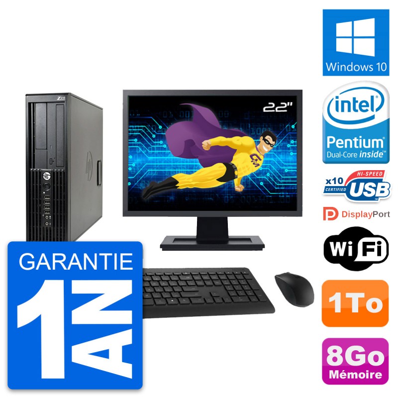 PC HP Z210 SFF Ecran 22" Intel Pentium G630 RAM 8Go Disque 1To Windows 10 Wifi