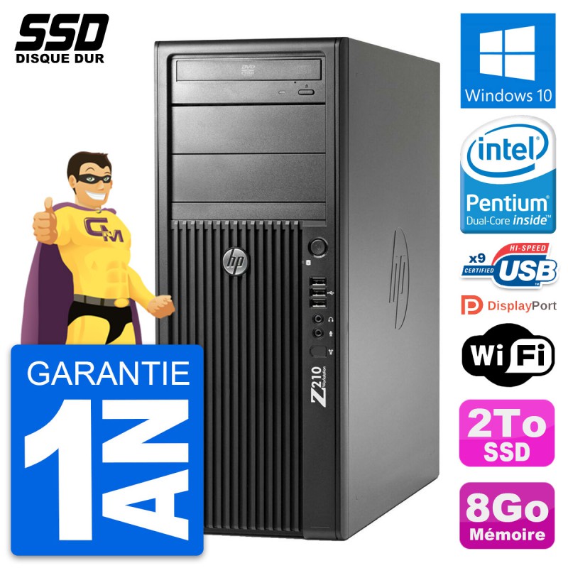PC Tour HP WorkStation Z210 - Intel Pentium Dual-Core G630 2.7 Ghz (3 Mo) - 8 Go DDR3 - SSD 2 To - Graveur DVD - Clef Wifi USB - Windows 10 - Garantie 1 an.