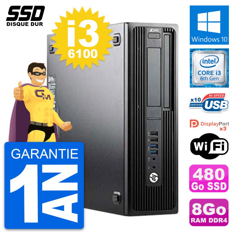 PC HP WorkStation Z240 SFF Intel Core i3-6100 RAM 8Go SSD 480Go Windows 10 Wifi