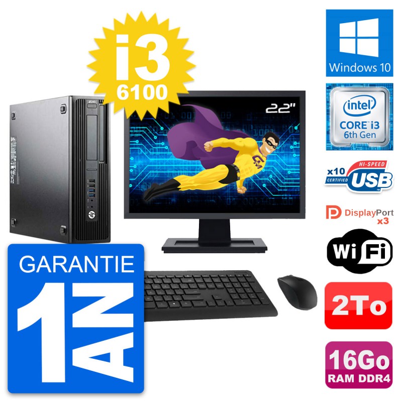 PC HP Z240 SFF Ecran 22" Intel Core i3-6100 RAM 16Go Disque 2To Windows 10 Wifi