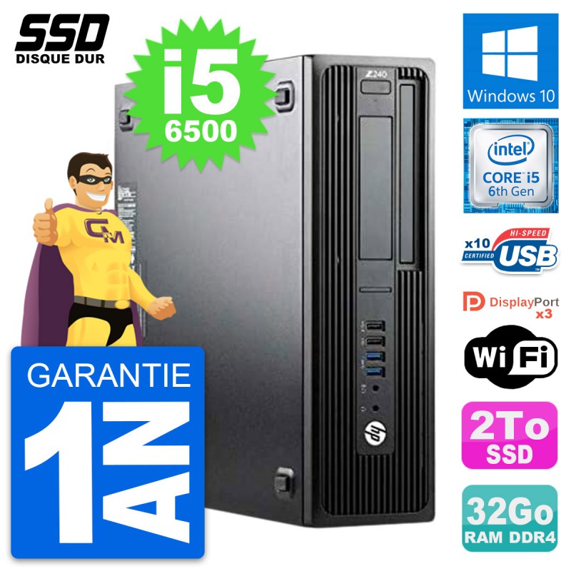 PC HP WorkStation Z240 SFF - Intel Core i5-6500 3.2 Ghz (6 Mo) - 32 Go DDR4 - SSD 2 To - Clef Wifi USB - Windows 10 - Garantie 1 an.