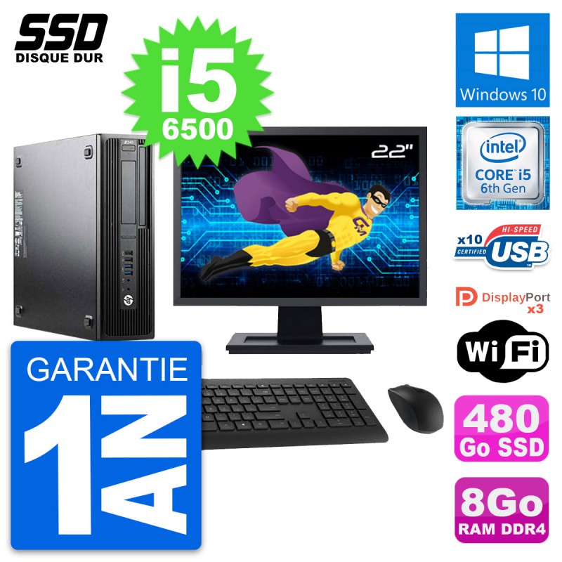 PC HP WorkStation Z240 SFF Ecran 22" i5-6500 RAM 8Go SSD 480Go Windows 10 Wifi