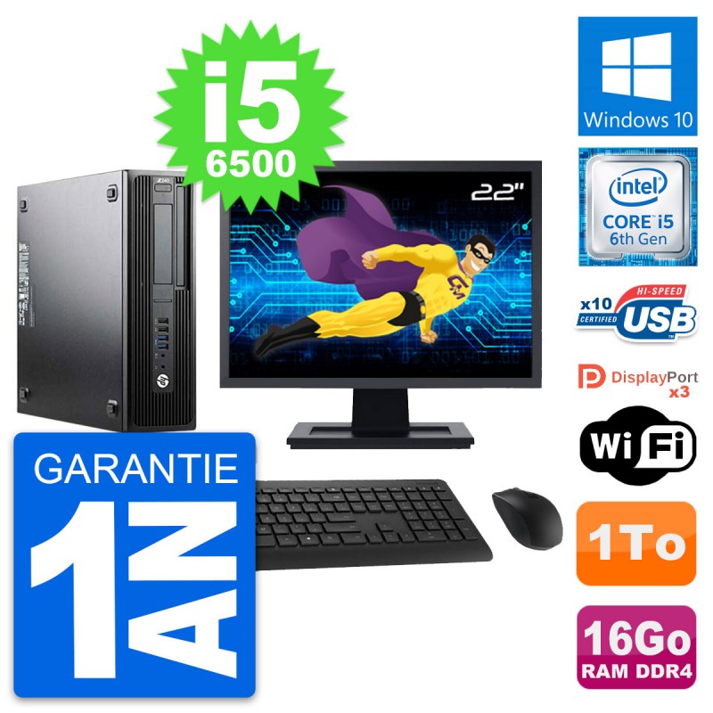 PC HP WorkStation Z240 SFF - Intel Core i5-6500 3.2 Ghz (6 Mo) - 16 Go DDR4 - Disque Dur 3,5" 1 To - Clef Wifi USB - Windows 10 - Livré avec Ecran 22" + clavier + souris (Marques et modèles variables) - Garantie 1 an.