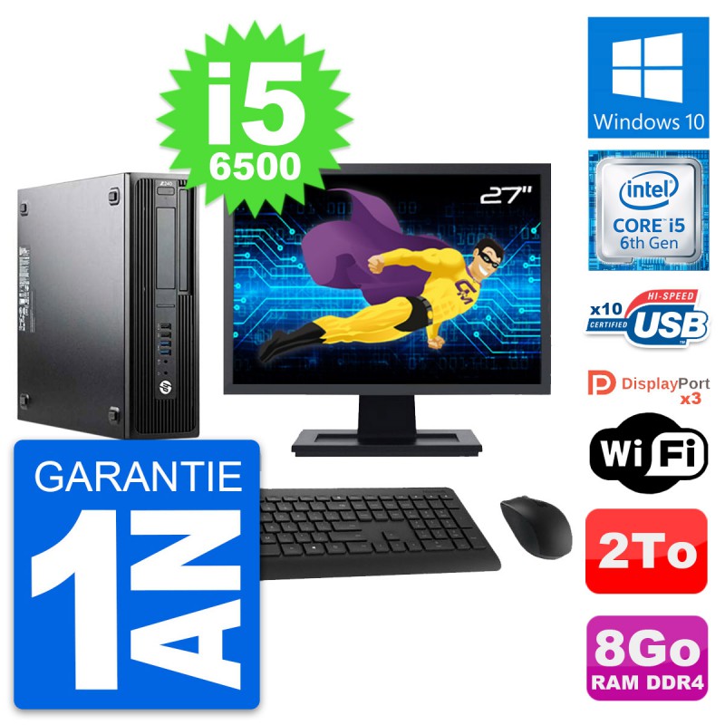 PC HP WorkStation Z240 SFF - Intel Core i5-6500 3.2 Ghz (6 Mo) - 8 Go DDR4 - Disque Dur 3,5" 2 To - Clef Wifi USB - Windows 10 - Livré avec Ecran 27" + clavier + souris (Marques et modèles variables) - Garantie 1 an.