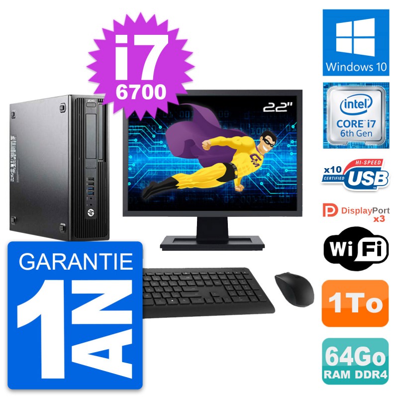 PC HP Z240 SFF Ecran 22" Intel Core i7-6700 RAM 64Go Disque 1To Windows 10 Wifi