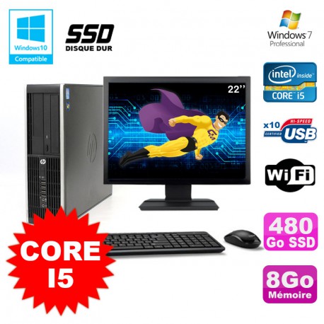 Lot PC HP Elite 8100 SFF Intel Core i5 3.2GHz 8Go 480Go SSD Graveur WIFI W7 +22
