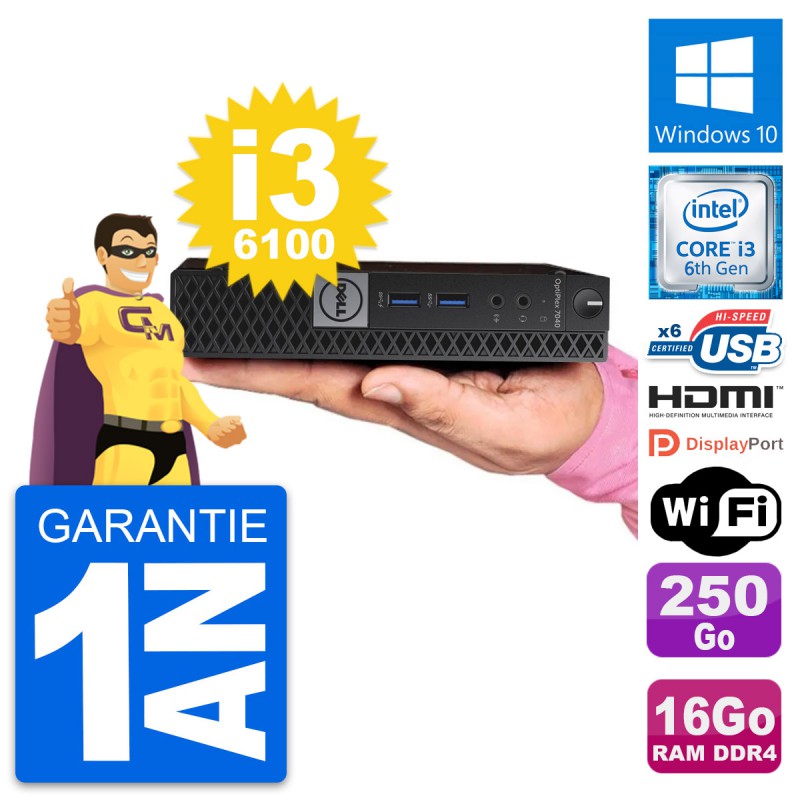 Mini PC Dell 7040 Micro Core i3-6100T RAM 16Go Disque 250Go HDMI Windows 10 Wifi