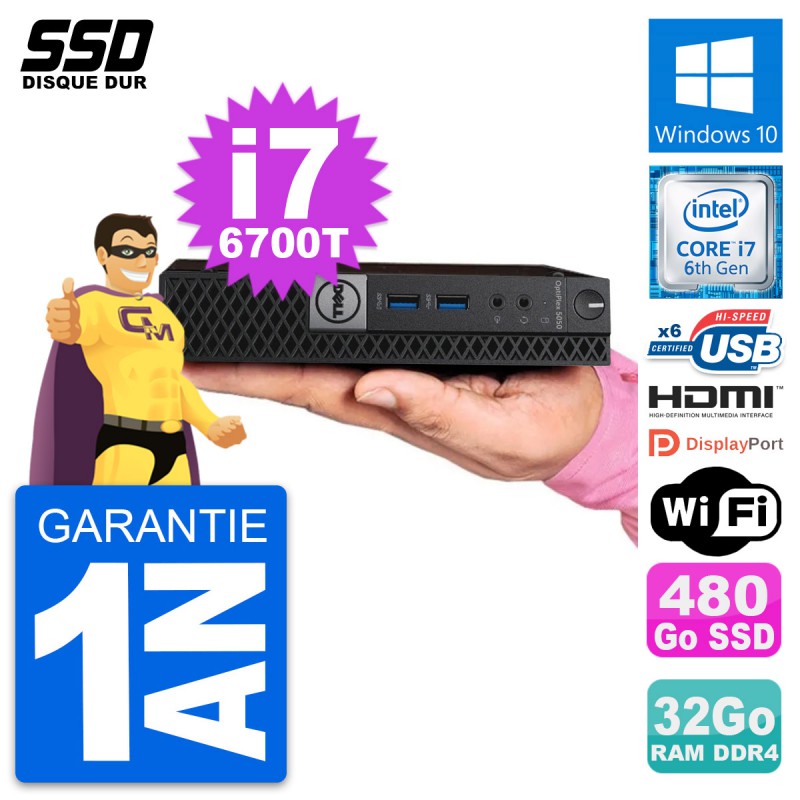 Mini PC Dell 5050 Micro Intel i7-6700T RAM 32Go SSD 480Go HDMI Windows 10 Wifi
