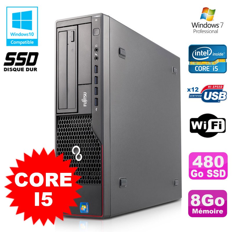 PC Fujitsu Esprimo E700 E90+ SFF - Intel Core i5-2400 3.1GHz (Turbo 3.4Ghz) - 4 Coeurs (4 Threads) - RAM 8 Go DDR3 - Disque dur 480Go SSD Neuf - Graveur DVD - Clé WIFI USB - Windows 7 Pro - Garantie = 6 mois.