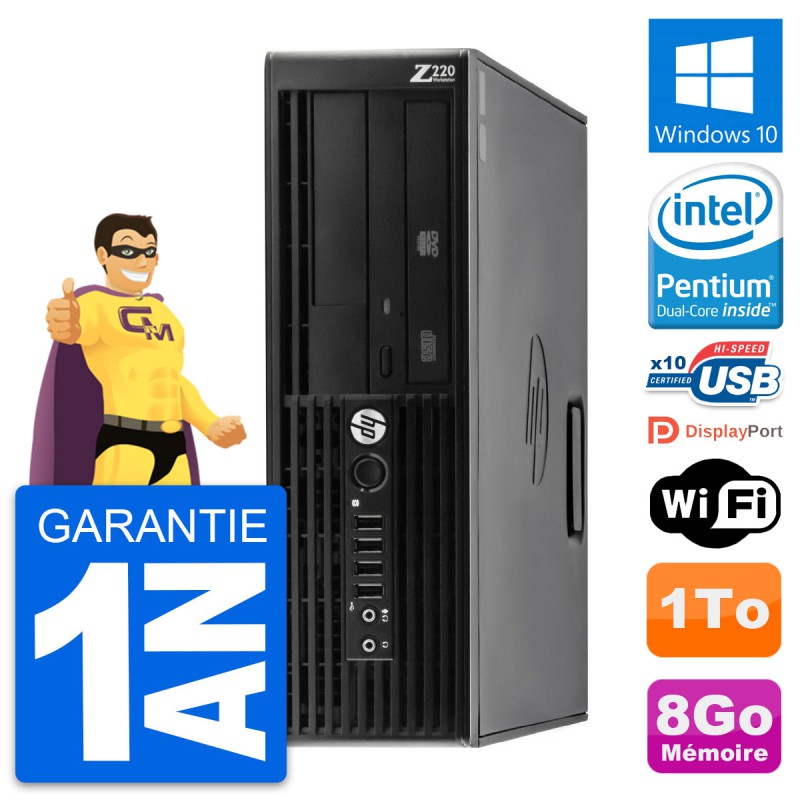PC HP WorkStation Z220 SFF - Intel Pentium Dual-Core G2020 2.9 Ghz (3 Mo) - 8 Go DDR3 - Disque Dur 3,5" 1 To - Graveur DVD - Clef Wifi USB - Windows 10 - Garantie 1 an.