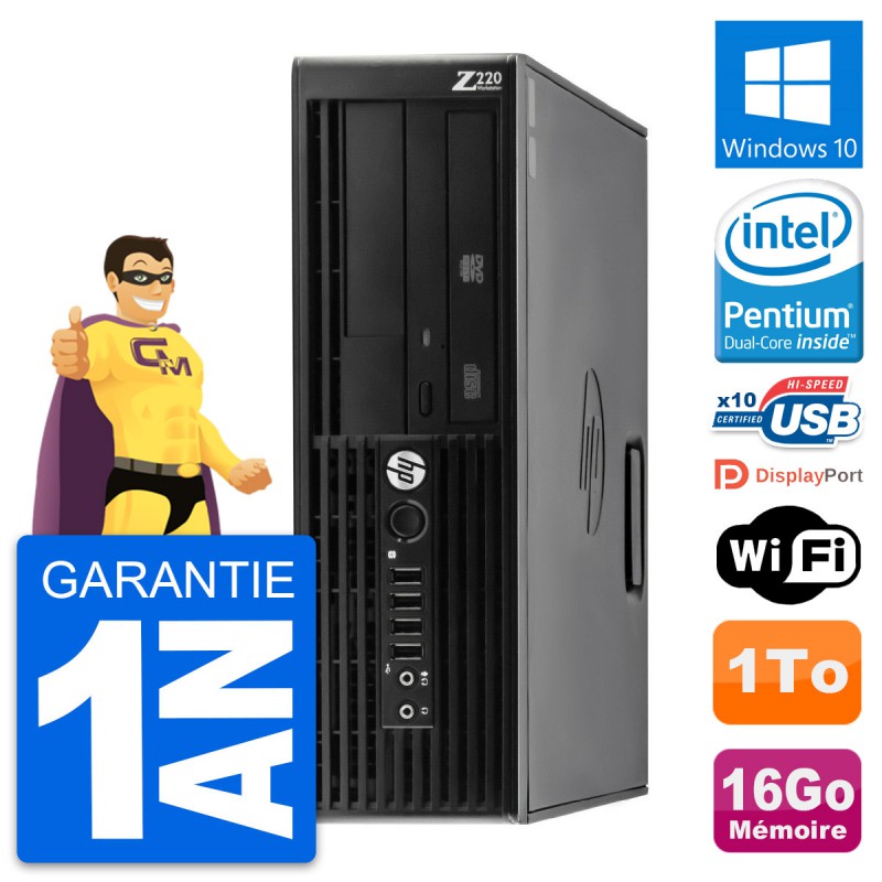PC HP WorkStation Z220 SFF - Intel Pentium Dual-Core G2020 2.9 Ghz (3 Mo) - 16 Go DDR3 - Disque Dur 3,5" 1 To - Graveur DVD - Clef Wifi USB - Windows 10 - Garantie 1 an.