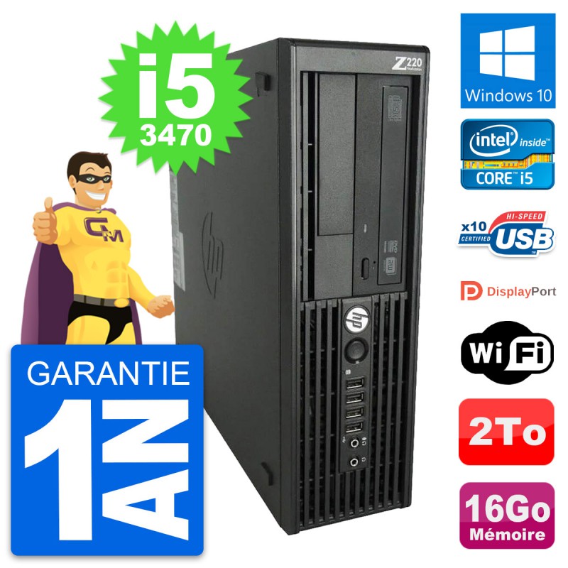 PC HP WorkStation Z220 SFF - Intel Core i5-3470 3.2 Ghz (6 Mo) - 16 Go DDR3 - Disque Dur 3,5" 2 To - Graveur DVD - Clef Wifi USB - Windows 10 - Garantie 1 an.
